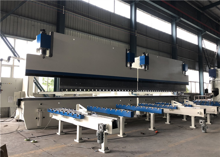 Two 2-PB6 Series in same specification are choosen as main machine with double motor linkage synchro-device, which may work together to process overlong workpiece or operate separately to increase production efficiency. Defection copensation device is fitted, too. Mechanic and fluid servos with mechanic slider are utilized in synchronous device. The stroke of upper slider and the position of rear apron are regulated quickly by machine and micro-regulated by hand with electronic NC display.